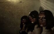 Some of the film's sexual content and violence was deemed too extreme by the studio, and was removed. Tunnicliffe said: "I don't think people could stomach my original version. The studio certainly couldn't. I could have easily made the film ten to fifteen minutes longer with a more intense cut, but it would probably be TOO much. In the end, wiser heads prevailed".Among Judgment's deleted content were a longer scene of Karl Watkins being skinned to death by the Inquisition's surgeon, and scenes involving the Cleaners. The original version of the sex scene between Sean and Alison Carter was more intense, with the camera cutting back and forth between Sean's view of his wife and visions of the Cenobites. Several false endings were conceived for the scene, including Sean's hallucination of Alison fellating him when he looks up after his orgasm to see David Carter smiling back at him. The nightmare scene in which Sean enters an alley and sees flashes of hell was originally longer and more graphic; at one point, he stumbles across Alison as part of a threesome behind a dumpster with two strange men in pig masks. Tunnicliffe wanted to use surreal imagery to convey that "Sean's world was being torn apart, undone by his experiences at the house within the hellish dimension". In Judgment's original concept pitch, the Jury eats the Assessor's regurgitated pages (not sifting through them) before handing down its verdict on the Stygian Inquisition's captives.